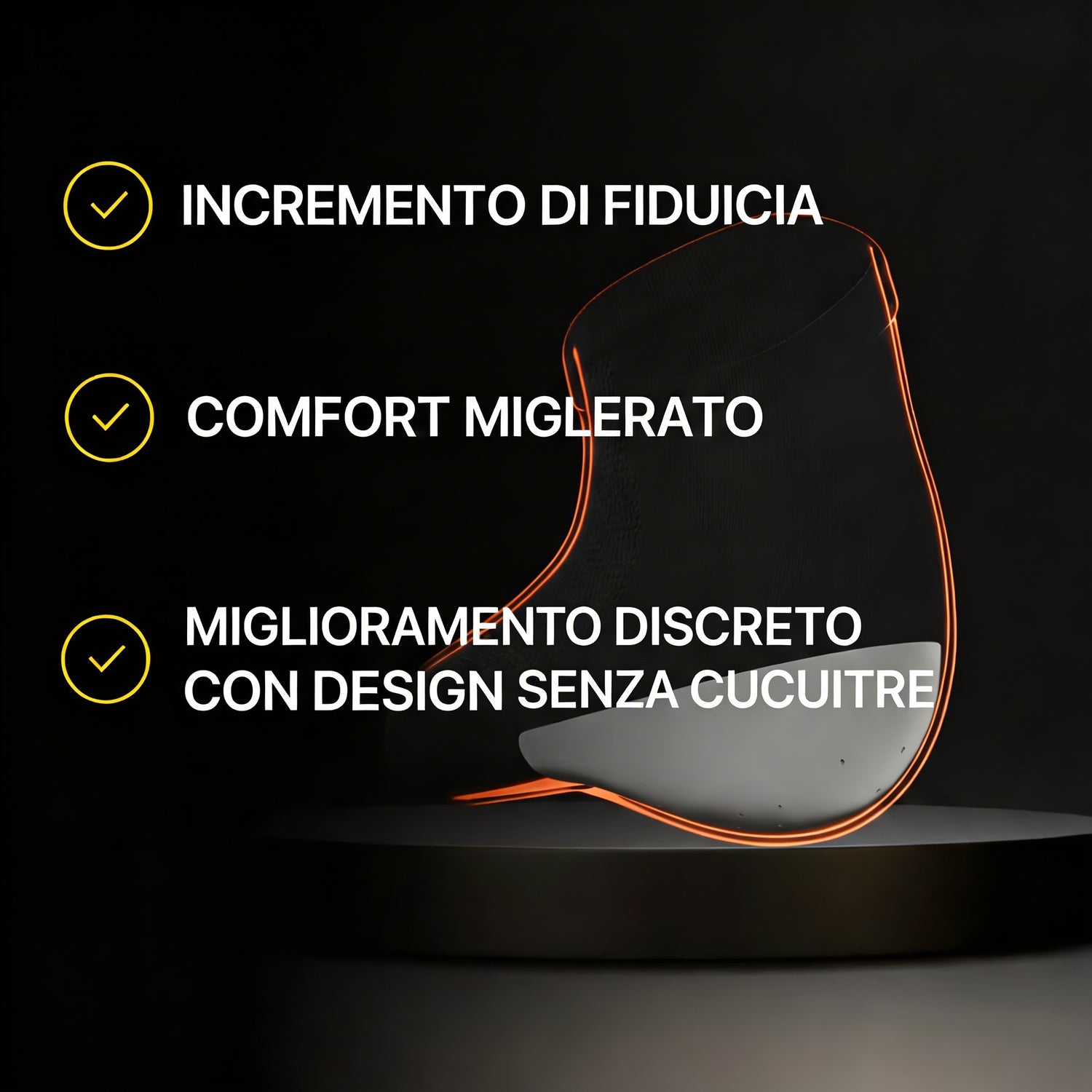 Goditi un supporto ottimale e una discrezione totale grazie alle solette in silicone ventilate AltezzaMax. Dì addio ai dolori ai piedi, alla fascite plantare e alle cattive posture: il loro design adattabile sposa perfettamente la forma dei tuoi piedi.